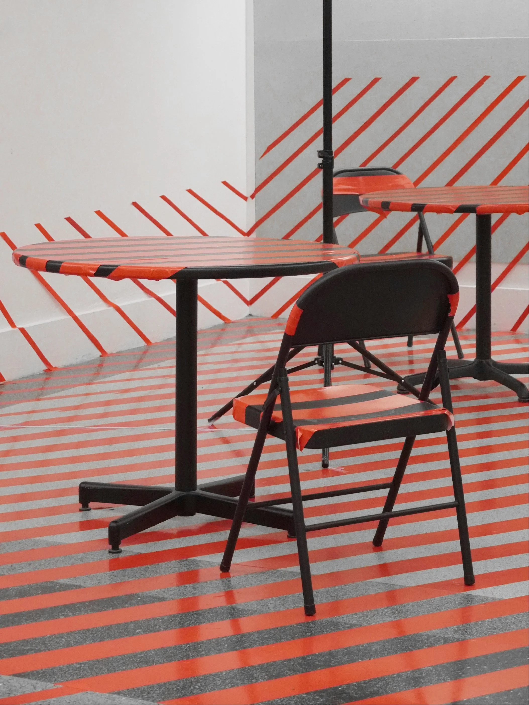 See it! Move it! Watch it! is an interactive public art installation that explores the relationship between human activity, space, and time. Using diagonal slash patterns, the installation visualizes the transition of the environment from ordered to disordered states, inviting the public to engage with the space and create evolving graphic art through their movements.