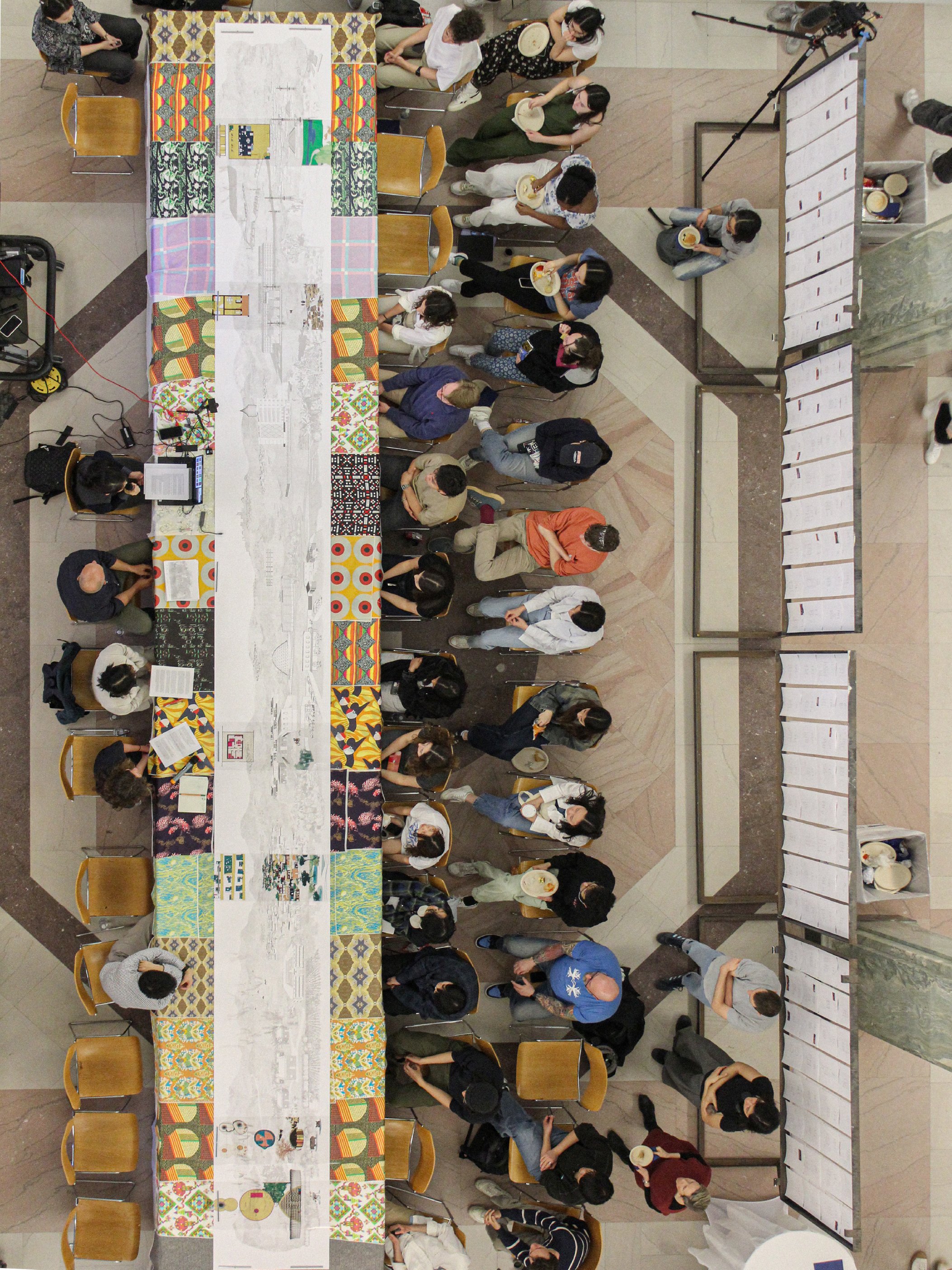 This research presents a 30-foot-long narrative drawing that chronicles the historical evolution of Rwandan housing, emphasizing the dynamic interplay among architectural forms, cultural traditions, and ecological adaptations. The base scroll is layered with six mylar overlays, each highlighting significant housing typologies and corresponding ecological elements from distinct historical periods. The work reveals how Rwandan architectural and landscape traditions have been suppressed, revived, and transformed over time, offering a rich visual exploration of their enduring resilience and transformation.